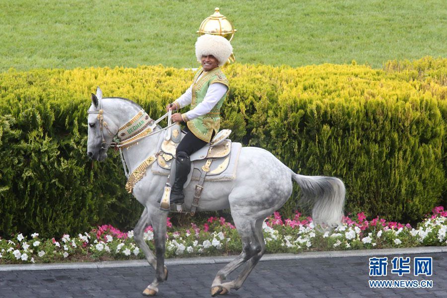 4月23日在土庫曼斯坦首都阿什哈巴德拍攝的獲得2016年度“最美汗血馬”稱號的“別格汗”。新華網記者 盧敬利 攝