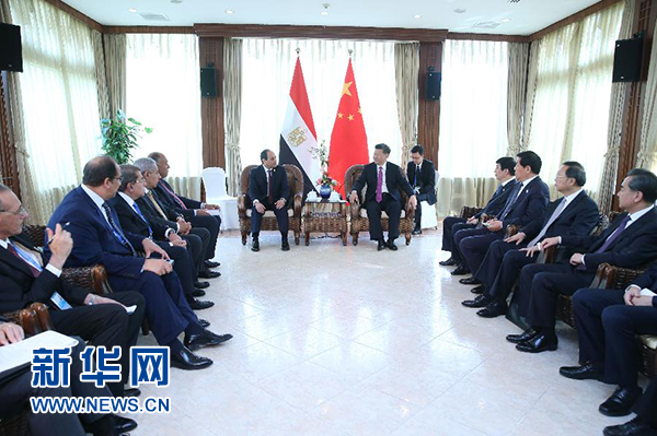 習近平強調,中方高度重視中埃關系。我們堅定支持埃及維護國家穩定,自主探索符合本國國情的發展道路,愿同埃方繼續在涉及彼此核心關切的問題上相互支持。要將兩國經貿合作落到實處,推動重點合作項目早日實施,加強產能、金融、民生、環保、基礎設施領域合作,密切在國際和地區事務中的協調和配合。雙方要以兩國建交60周年為新起點,推動中埃關系不斷得到新的更大發展。