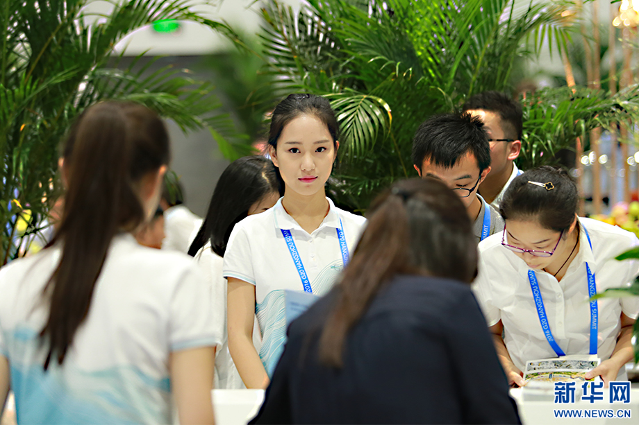????“小青荷”是此次峰會志愿者的代名詞。這個名字取自宋代詩人楊萬里描寫杭州的詩句“接天蓮葉無窮碧,映日荷花別樣紅”,“青荷”也音同“親和”,他們成了G20杭州峰會新聞中心里一道亮麗的風景。新華網 祝立銘 攝