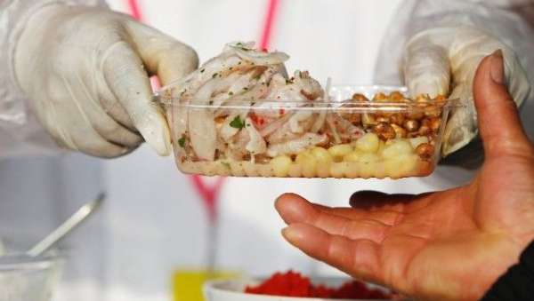 ????“塞維切”是深受秘魯人喜愛的傳統美食,其基本做法是將經過加工的鮮魚、蝦、貝類等海產品與切碎的洋蔥、辣椒等用檸檬汁腌制而成,享用時配上煮熟的紅薯和嫩玉米等,被譽為秘魯“國菜”。