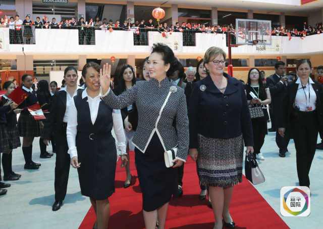 ??? 彭麗媛抵達時,秘魯總統(tǒng)夫人蘭格和學校校長在下車處迎接,校長為彭麗媛獻上鮮花。若望二十三世秘中學校創(chuàng)辦于1962年,是從幼兒園到中學教育的全日制學校,也是秘魯乃至南美洲最具影響的華文學校之一。