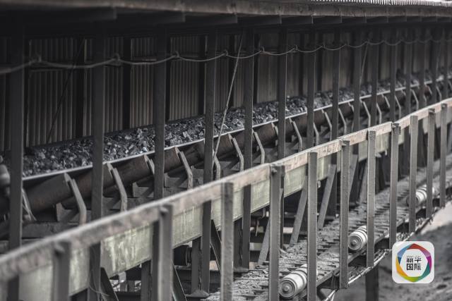 首鋼秘鐵采礦場內的礦石傳送帶。(新華社記者申宏攝)