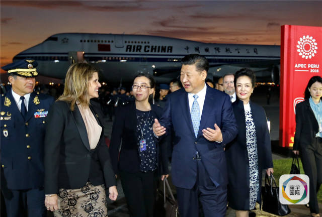 當地時間11月18日,國家主席習近平抵達利馬,出席亞太經合組織第二十四次領導人非正式會議并對秘魯共和國進行國事訪問。習近平和夫人彭麗媛受到秘魯副總統阿勞斯等熱情迎接。新華社記者鞠鵬攝