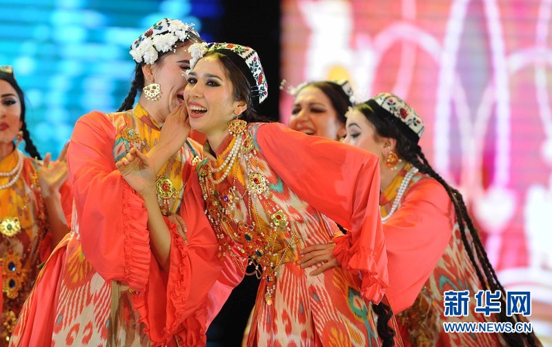 1月18日晚,烏茲別克斯坦首都塔什干人民友誼宮,烏茲別克斯坦舞蹈演員在表演中烏傳統舞蹈。