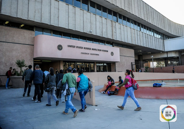 在卡萊克西科,墨西哥人準備進入海關關口回到墨西哥。(新華社記者張超群攝)