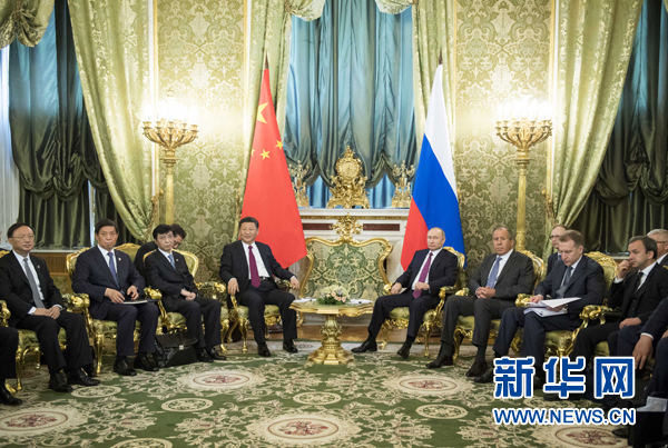 普京表示,俄中關系發展得非常好。擁有高水平互信和完善合作機制是俄中關系的巨大優勢。習近平主席此次訪問俄羅斯具有重要意義。我同習近平主席建立了非常良好的工作關系和深厚友誼。此訪期間,我同習近平主席深入交換意見,就鞏固政治互信,加強各領域務實合作、深化人文交流、密切在重大國際和地區問題上溝通協調達成高度共識,訪問取得圓滿成功。俄方愿同中方一道,繼續加強俄中全面戰略伙伴協作。