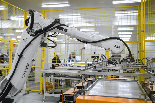 中德智能制造合作試點示范項目——正泰光伏組件智能工廠。(新華社記者申宏攝)