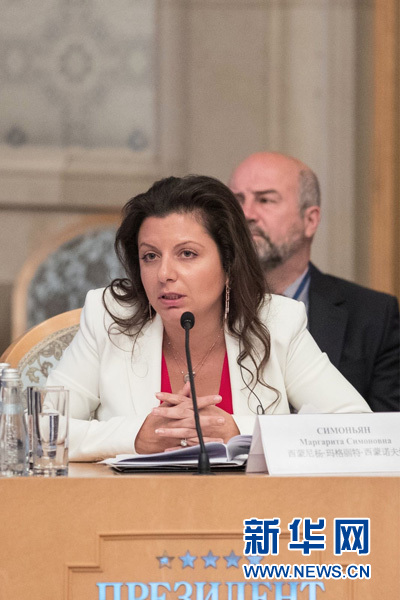 7月4日,“今日俄羅斯”電視臺總編輯西蒙尼揚在第三屆中俄媒體論壇上發言。新華社記者 吳壯 攝