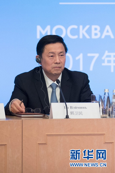 7月4日,國務院新聞辦副主任郭衛民在第三屆中俄媒體論壇上聆聽報告。新華社記者 吳壯 攝