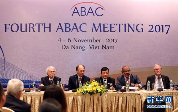 11月6日,在越南峴港,APEC工商咨詢理事會(huì)成員代表出席記者會(huì)。2017亞太經(jīng)合組織(APEC)工商咨詢理事會(huì)成員6日表示,中國經(jīng)濟(jì)發(fā)展對(duì)APEC區(qū)域經(jīng)濟(jì)發(fā)展至關(guān)重要,期待中國智慧在推動(dòng)區(qū)域經(jīng)濟(jì)一體化方面發(fā)揮更大作用。新華社記者李鵬攝