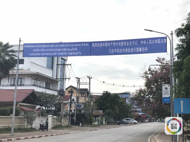 從機(jī)場(chǎng)行車前往萬(wàn)象市區(qū),路邊不時(shí)看到中老兩國(guó)元首的大幅畫(huà)像。從機(jī)場(chǎng)到市區(qū)的路上,中老兩國(guó)國(guó)旗隨處可見(jiàn),迎風(fēng)招展;萬(wàn)象市區(qū)各個(gè)路口,樹(shù)立著醒目的歡迎標(biāo)語(yǔ)。