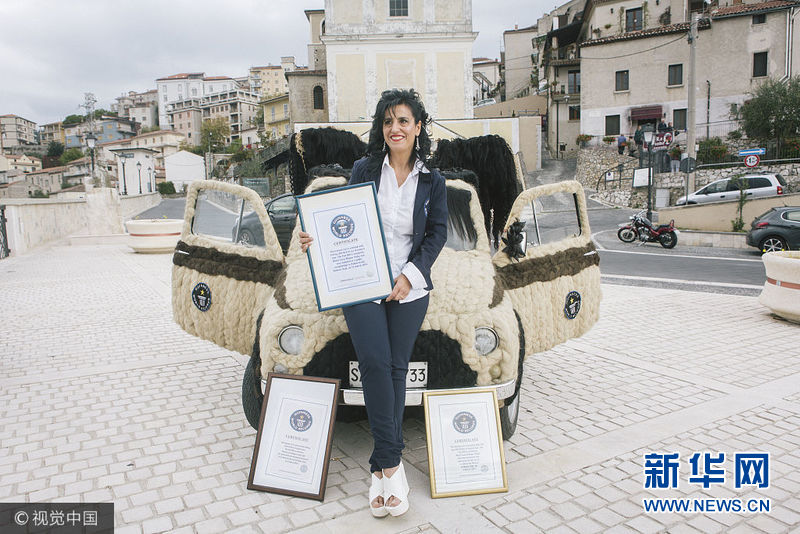 當地時間2017年10月22日,意大利帕杜拉,一位意大利發型設計師Maria Lucia Mugno花費了超過8萬英鎊來裝飾自己的車子,這讓她獲得了吉尼斯世界紀錄。這項工程需要150個小時來完成,用于裝飾的頭發總重量達到100公斤。(圖片來源:視覺中國)