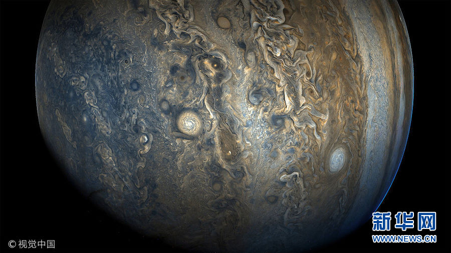 12月21日訊(具體拍攝時間不詳),這一系列由木星探測器“朱諾”號帶來的高清圖,錯綜復雜的星云結構看上去就像印象派大師的畫作。(圖片來源:視覺中國)