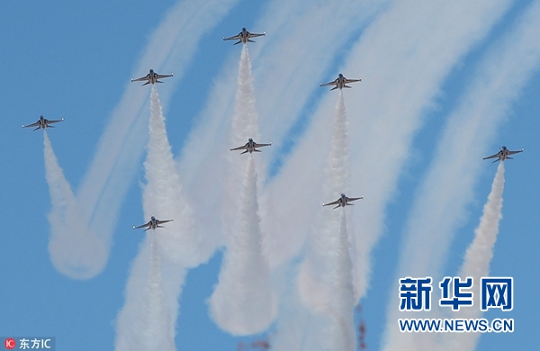 當地時間2017年12月21日,韓國平昌,距離2018年平昌冬奧會開幕僅剩50天,韓國空軍黑鷹特技飛行隊在阿爾卑西亞體育場上空進行精彩表演。(圖片來源:東方IC)