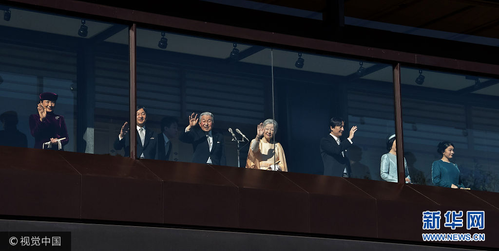 當地時間2017年12月23日,日本東京,日本明仁天皇慶祝84歲生日,在皇宮的陽臺上向祝福者揮手致意。(圖片來源:視覺中國)