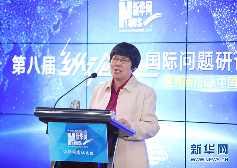 12月26日,新華網第八屆“縱論天下”國際問題研討會成功舉行。圖為中國現代國際關系研究院研究員陳鳳英在主旨演講。新華網發(郭小天攝)。