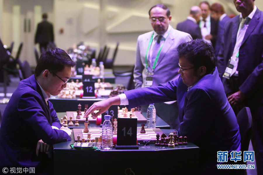 12月26日,沙特阿拉伯利雅得,世界快棋錦標(biāo)賽在當(dāng)?shù)嘏e行。國際象棋聯(lián)合會24日說,7名以色列選手因簽證申請?jiān)馍程匕⒗芙^無緣參賽。(圖片來源:視覺中國)