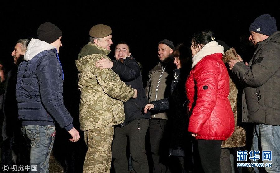 12月27日,烏克蘭哈爾科夫,獲釋戰俘抵達哈爾科夫。烏克蘭政府軍與東部民間武裝當日舉行了大規模的交換戰俘行動。(圖片來源:視覺中國)