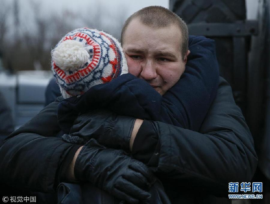 12月27日,烏克蘭哈爾科夫,獲釋戰俘抵達哈爾科夫。烏克蘭政府軍與東部民間武裝當日舉行了大規模的交換戰俘行動。(圖片來源:視覺中國)