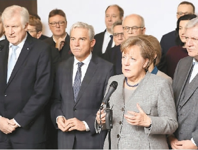 在此前的大選中,默克爾帶領(lǐng)的基民盟勝出,成為第一大黨,但它和基社盟組成的“聯(lián)盟黨”在議會中未超過半數(shù)席位,因此必須和其他黨聯(lián)合組閣。