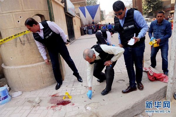 12月29日,警察在埃及開羅教堂襲擊事件現場調查。新華社發(艾哈邁德·戈馬攝)