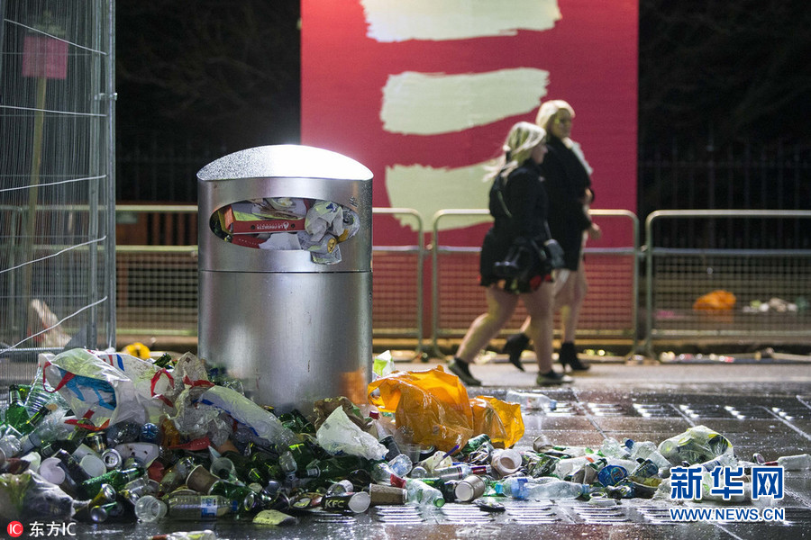 2018年1月1日,英國(guó)愛丁堡,跨年狂歡過(guò)后,遍地垃圾。(圖片來(lái)源:東方IC)
