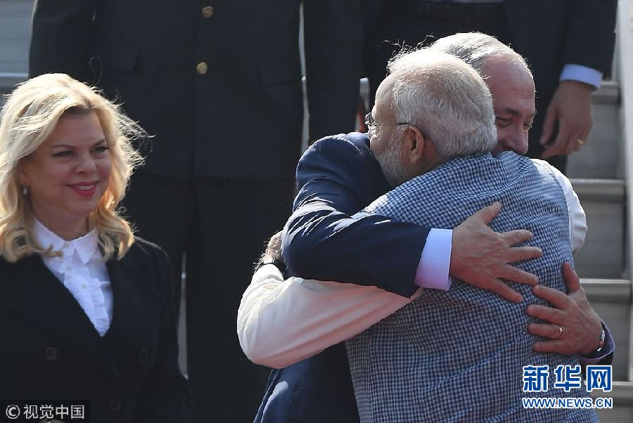 當(dāng)?shù)貢r(shí)間1月14日,印度新德里,以色列總理內(nèi)塔尼亞胡抵達(dá)印度展開(kāi)訪問(wèn)。(圖片來(lái)源:視覺(jué)中國(guó))