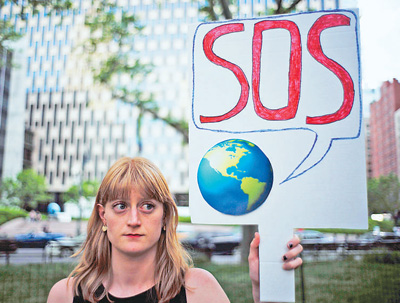 美國總統特朗普去年宣布美國退出應對全球氣候變化的《巴黎協定》。圖為在美國紐約,一名女子手持標語參加活動,抗議特朗普的決定。 新華社發