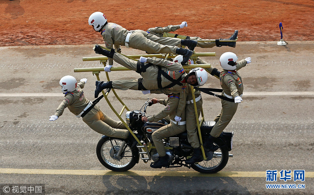 印度舉行閱兵游行慶祝第69個共和國日 摩托車隊再展“神技”