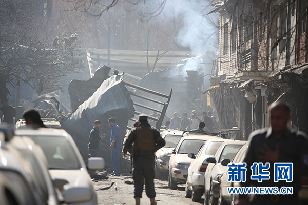1月27日,在阿富汗首都喀布爾市中心,人們將遇難者遺體從爆炸現場抬離。新華社發(拉赫馬特 攝) 1月27日,一名安全人員在阿富汗首都喀布爾市中心的爆炸現場警戒。新華社發(拉赫馬特 攝) 1月27日,在阿富汗首都喀布爾市中心,安全人員在爆炸現場警戒。2018-01-28 07:10:07