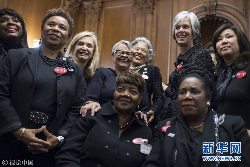 當地時間1月30日,美國華盛頓,民主黨國會議員和性侵幸存者一同穿黑衣現身國會大廈,聲援勇敢反對性騷擾和歧視的人們。眾議院民主黨人計劃穿黑衣出席特朗普的國情咨文演講,支持MeToo和TimesUp組織。 (圖片來源:視覺中國)
