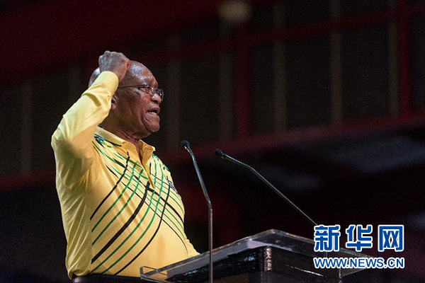 2月14日,南非總統雅各布·祖馬發表全國講話時宣布辭職。這是祖馬在南非約翰內斯堡舉行的非洲人國民大會(非國大)第54屆全國代表大會上發言的資料照片(2017年12月16日攝)。新華社發(戴維·奈克爾攝)