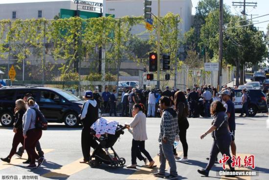 資料圖片:2月1日,美國洛杉磯市一所中學發生槍擊事件,一名據信年僅12歲的女孩在教室里開槍。