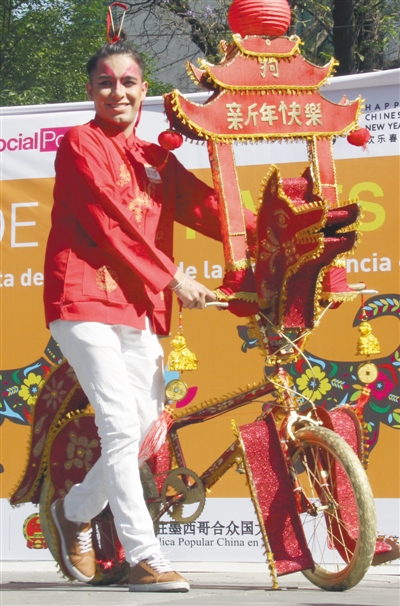 獲得大賽一等獎(jiǎng)的作品是利用廢報(bào)紙?jiān)谧孕熊嚿涎b扮出的巨大“報(bào)紙犬”,狗年元素和綠色出行元素兼而有之,凸顯廢物利用的環(huán)保主題。三人創(chuàng)作團(tuán)隊(duì)中的貝尼托告訴本報(bào)記者,他們經(jīng)營(yíng)一家以紙板、報(bào)紙、塑料等為原料制作手工藝品的小型公司,這次的作品耗時(shí)兩周。他說:“與去年相比,今年參加比賽的人更多、新點(diǎn)子也更多了,這樣的大型活動(dòng)讓更多墨西哥人對(duì)中國(guó)文化產(chǎn)生興趣。”