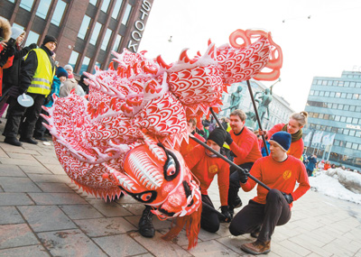 2月15日,第十二屆“歡樂春節(jié)·赫爾辛基廟會(huì)”在芬蘭首都赫爾辛基舉行,吸引大量民眾參加。圖為當(dāng)?shù)厝嗽谖椠垺P氯A社發(fā)
