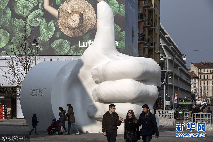 畫風清奇!意大利米蘭地標建筑旁現(xiàn)“點贊”大拇指