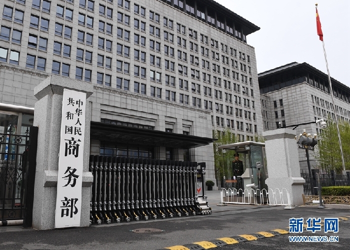 商務(wù)部新聞發(fā)言人就美方發(fā)布對華301調(diào)查項(xiàng)下征稅產(chǎn)品建議清單發(fā)表談話。這是中華人民共和國商務(wù)部(4月4日攝)。新華社記者 李賀 攝