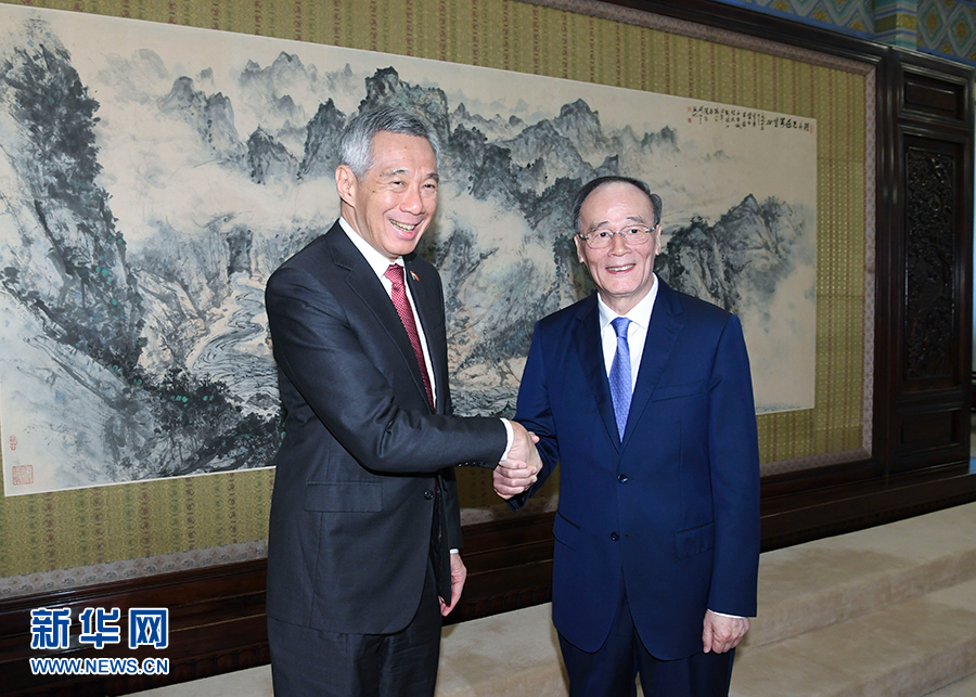 王岐山表示,習近平新時代中國特色社會主義思想將指導我們全面建成小康社會、奔向第二個百年目標。在走向現代化的過程中要堅定“四個自信”,拓寬眼光、保持定力。認清潮流最重要,構建人類命運共同體是歷史發展的必然。中國發展離不開世界,世界發展也離不開中國,新時代開放理念具有豐富內涵,中國將堅定不移在更高層次上擴大開放。中新關系具有戰略性和前瞻性,雙方合作互利共贏。中方愿同新方互學互鑒,推動兩國關系全方位發展。