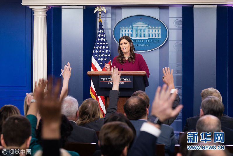 當地時間2018年4月10日,美國華盛頓,白宮發言人桑德斯宣布美國總統特朗普將不會按原計劃前往秘魯,參加第八屆美洲國家峰會,并派副總統代為前往。原因是特朗普需要留在國內,負責對敘利亞問題作出回應以及觀察國際動向。(圖片來源:視覺中國)