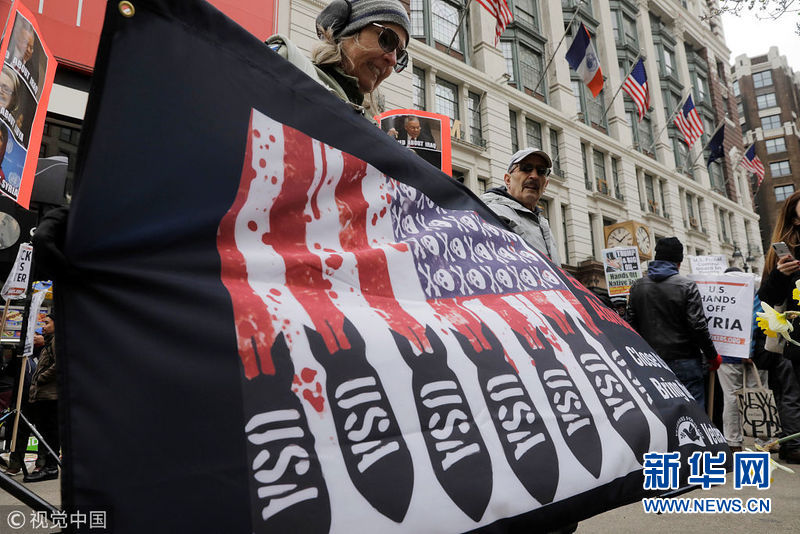 美國民眾舉行反戰游行 抗議美英法聯軍襲擊敘利亞