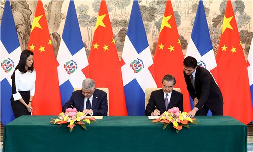 王毅表示,中國和多米尼加正式建交,標志著兩國關系翻開了新的歷史篇章。從此,中國在拉美多了一位守望相助的好朋友,多米尼加在發展振興道路上有了一位互利合作的好伙伴,中多雙方將成為促進南南合作、維護發展中國家共同利益的好兄弟。中國特色社會主義進入了新時代,正在加快實現現代化進程。同中國建交,意味著為多米尼加自身發展帶來前所未有的巨大機遇。隨著雙方合作潛力的不斷釋放,這一機遇將迅速轉化成現實,為1000多萬多米尼加人民持續帶來實實在在的利益和福祉。多米尼加是中美洲和加勒比地區最大經濟體,在地區事務中有著重要影響,中多建交也將為中國和拉美的整體合作注入新的動力,開辟新的空間。
