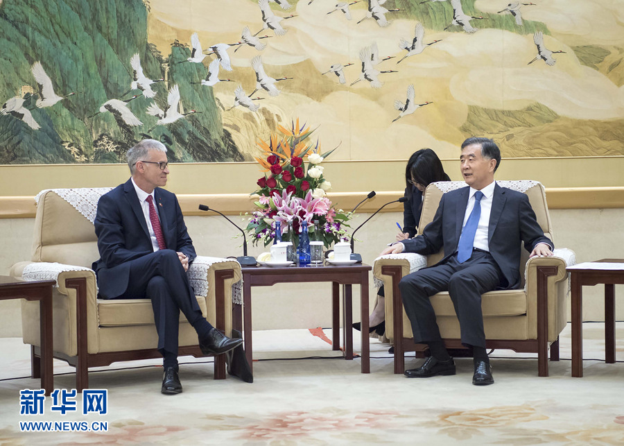5月2日,全國政協主席汪洋在北京會見法國經濟社會環境理事會主席貝爾納斯科尼。 新華社記者 李濤 攝