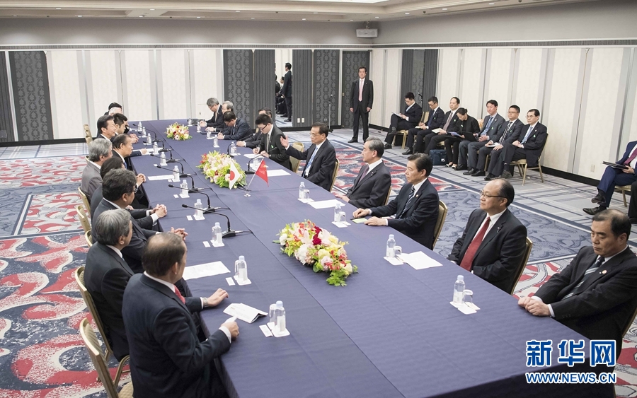 當地時間5月10日下午,國務院總理李克強在東京下榻飯店會見日本執政黨負責人、自民黨干事長二階俊博和公明黨代表山口那津男一行。新華社記者 李濤 攝