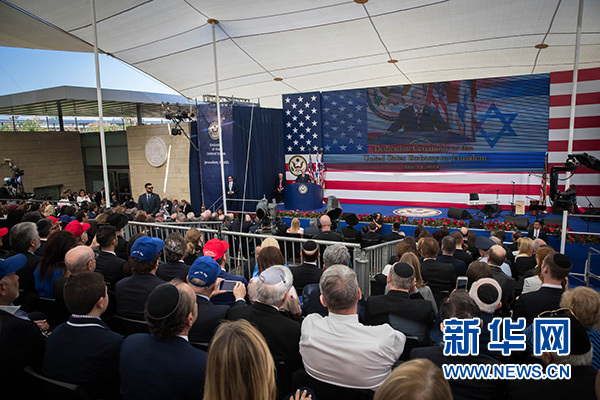 數(shù)百名官員參加了當(dāng)天的美國新使館開館儀式。美國副國務(wù)卿沙利文率領(lǐng)美方代表團(tuán)出席儀式,其中包括美國總統(tǒng)特朗普的女兒伊萬卡和她的丈夫庫什納,以及美財(cái)政部長姆努欽。