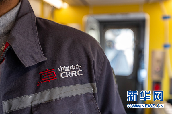 這是5月15日在美國馬薩諸塞州梅德福德惠靈頓站拍攝的中車長客為波士頓橙線地鐵“量身訂制”的首批車輛上中車長客員工制服上的標(biāo)識。新華社記者 李木子 攝