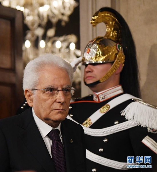 5月27日,在意大利首都羅馬,意總統馬塔雷拉出席新聞發布會。據當地媒體報道,意大利新任總理孔特27日晚間與總統馬塔雷拉會面并提交擬定的內閣成員名單時,馬塔雷拉否決了由意大利聯盟黨和五星運動力推的持疑歐立場的經濟學家保羅·薩沃納出任財政部長。孔特向總統提出放棄組閣任務請求,請求得到總統確認。新華社發(阿爾貝托·林格里亞攝)