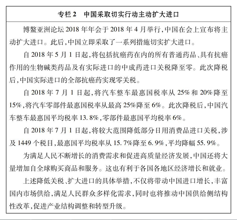 站在新時代的歷史起點上,中國開放的大門不會關(guān)閉,只會越開越大。中國過去40年的經(jīng)濟發(fā)展是在開放條件下取得的,未來中國經(jīng)濟實現(xiàn)高質(zhì)量發(fā)展也將在更加開放條件下進行。中國將繼續(xù)堅持對外開放基本國策,以更加積極的姿態(tài)融入經(jīng)濟全球化進程,實行高水平的貿(mào)易和投資自由化便利化政策,與各國構(gòu)建利益高度融合、彼此相互依存的命運共同體。