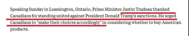 第三,大是大非上一定要團(tuán)結(jié)一致。一說到團(tuán)結(jié),有的人總會(huì)聯(lián)想過于豐富:要么認(rèn)為這是要老百姓放棄自己的思考,要么認(rèn)為必須通過極端方式表達(dá)自己洶涌的激情——我們印象里一向溫和的加拿大,這次是怎么做的?用美聯(lián)社報(bào)道的話:特魯多在利明頓市演講時(shí)表示:感謝加拿大民眾團(tuán)結(jié)一致反對(duì)特朗普的制裁,并鼓勵(lì)民眾根據(jù)自己的實(shí)際情況做出要不要買美國產(chǎn)品的選擇。特魯多為什么這樣說?事實(shí)上,自從G7之后特朗普攻擊特魯多“軟弱”“虛偽”以來,推特上“購買加拿大產(chǎn)品”“抵制美國貨”“抵制美國”“擺脫川普”等話題就在不斷升溫,很多加拿大人調(diào)整了消費(fèi)習(xí)慣,轉(zhuǎn)而購買自己國家的產(chǎn)品。網(wǎng)友們的這些抵制活動(dòng),被特魯多稱為是一股“愛國熱情”。