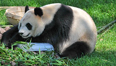 沈陽森林動物園內大熊貓“趴冰”消暑