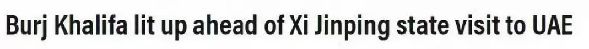 如上文所提到的哈利法塔,將在習主席訪問阿聯酋期間點亮五星紅旗的顏色。